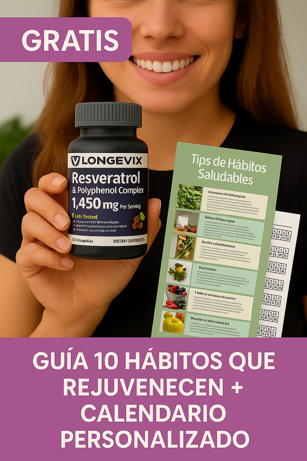 “El resveratrol neutraliza los radicales libres, moléculas responsables del envejecimiento celular, y estimula mecanismos naturales de reparación, ayudando a tu cuerpo a mantenerse en su mejor versión.”